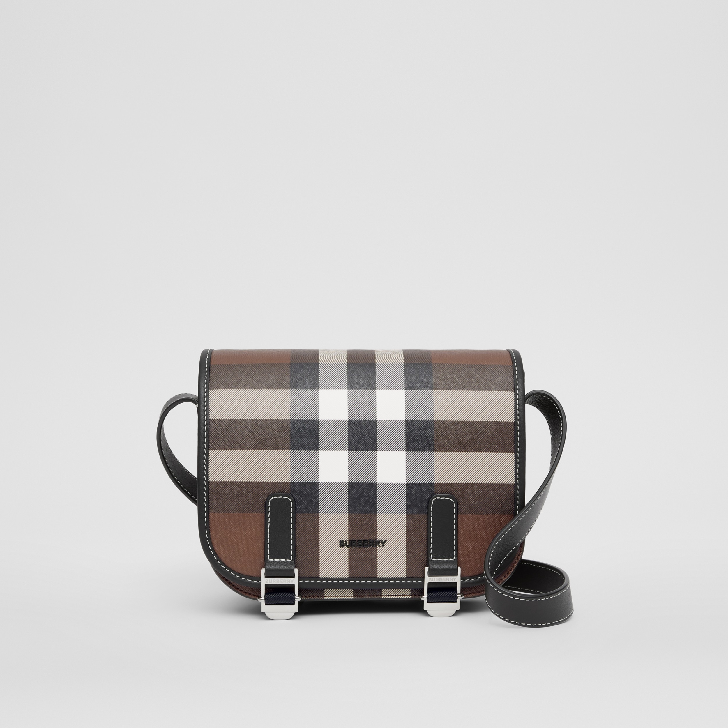 Check Print And Leather Messenger Bag In Dark Birch Brown Men Burberry Official